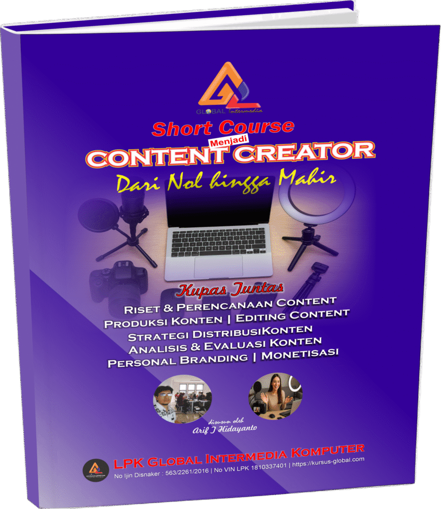 Di era digital ini, Content Creator bukan lagi sekadar hobi, melainkan profesi paling dicari dengan potensi penghasilan yang tak terbatas. LPK Global Intermedia Komputer menghadirkan Short Course Intensif Content Creator yang dirancang khusus untuk membimbing Anda, bahkan jika Anda benar-benar pemula (dari Nol), hingga menjadi seorang Content Creator profesional dan Mahir.